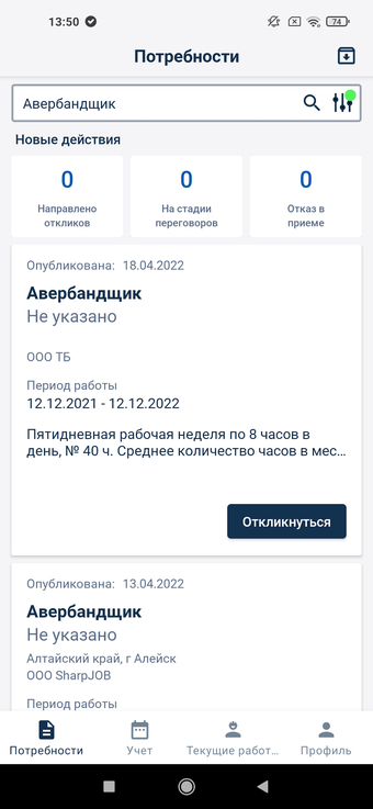 Рабочая сила: для поиска работы требуется Android 9.0 и выше. Текущая версия приложения 1.1.0(132), запустить его можно только на русском языке.